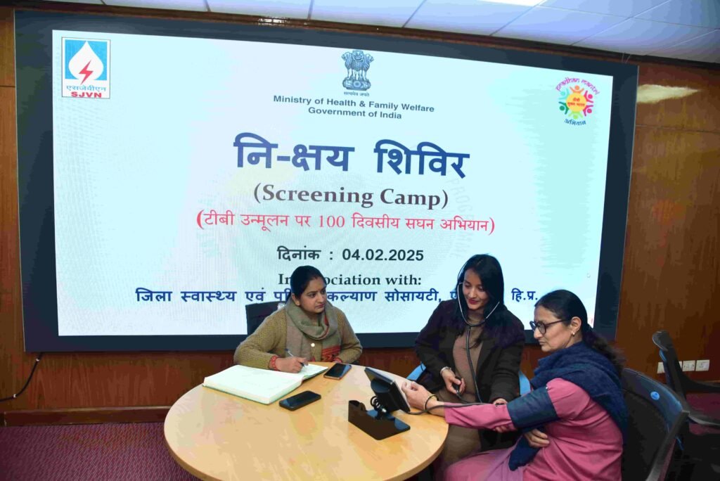 एसजेवीएन ने भारत सरकार के स्वास्थ्य एवं परिवार कल्याण मंत्रालय द्वारा टीबी उन्मूलन पर शुरू किए गए 100 दिवसीय गहन अभियान के तहत कारपोरेट मुख्यालय, शिमला में जागरूकता सत्र एवं नि-क्षय शिविर (स्क्रीनिंग कैम्प) का आयोजन किया।